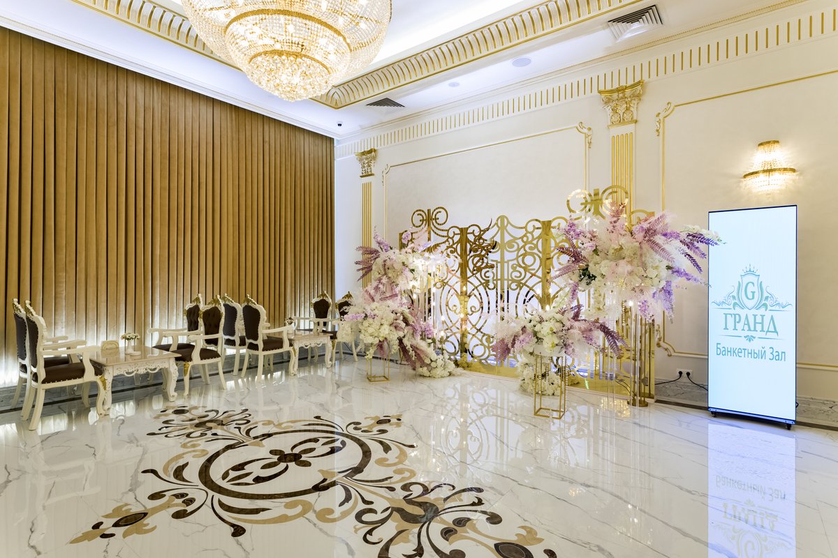 Банкетный зал Гранд - это пространство, где каждый день как праздник или важное мероприятие. Наше убранство и отлаженный сервис создадут необходимое настроение, чтобы вы могли всецело погрузиться в праздничную атмосферу. Очень важно дать нам информацию по его формату и желаемой дате, т.к. нужно определиться со многими оргвопросами: рассадка гостей, расстановка мебели, оборудование, которое потребуется вам в процессе.